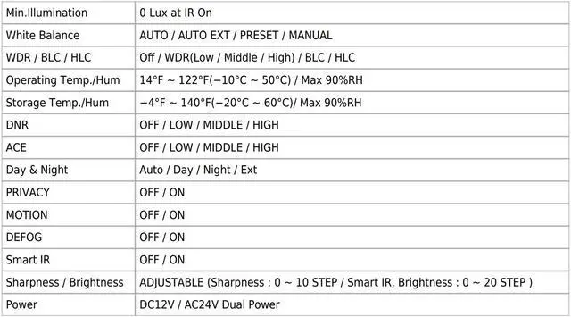 0 Lux at IR On (IR LED 04 pcs)