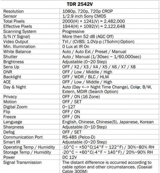 Eyemax Superdome Series Indoor IR Dome 1080P HD-TVI Camera TDR-2542V, 2.8-12mm 12V DC ( Made In Korea ) White Case