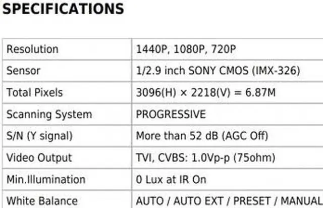 1/2.9 inch SONY CMOS/ HD-TVI (1440P 30fps)