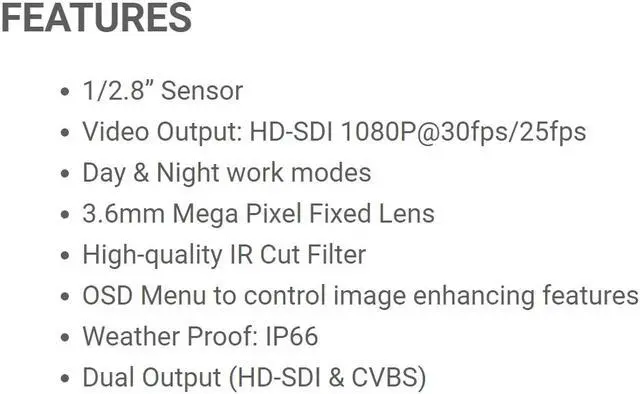 Video Output: HD-SDI 1080P@30fps/25fps