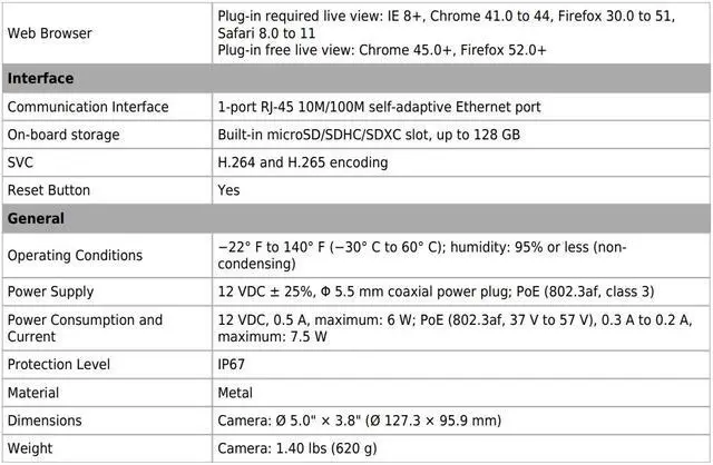 12 VDC ± 25% (PoE 802.3af), maximum 7.5 W