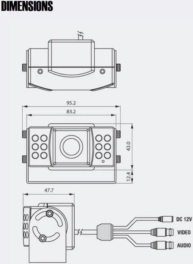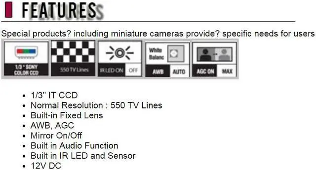 CNB CN330IR Bustop vehicle Camera, 550 TVL High Resolution, 2.5mm Super wide lens, 12 IR LED's night vision, Built-in Audio, Mirror Function, 12V DC