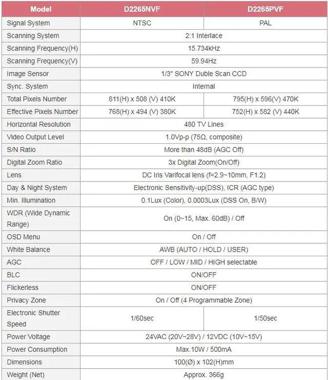 • CNB D2265NVF 1/3 SONY Double Scan WDR, High Resolution, ICR, DSS, Dual Power Low light, Vari-focal 2.9-10mm