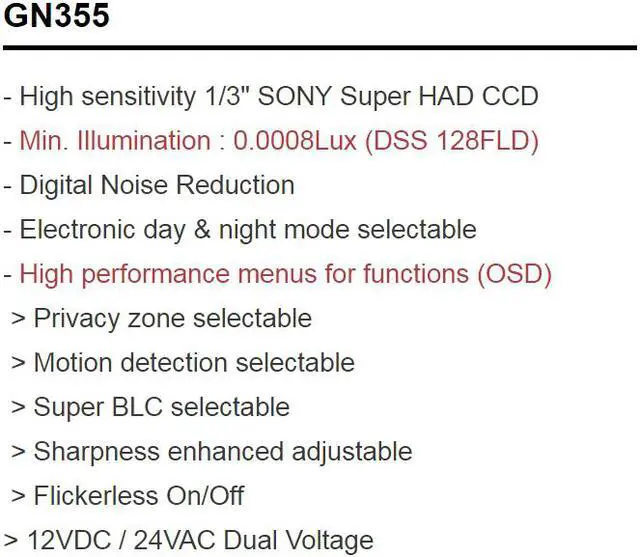 Min. Illumination : 0.0008Lux (DSS 128FLD)