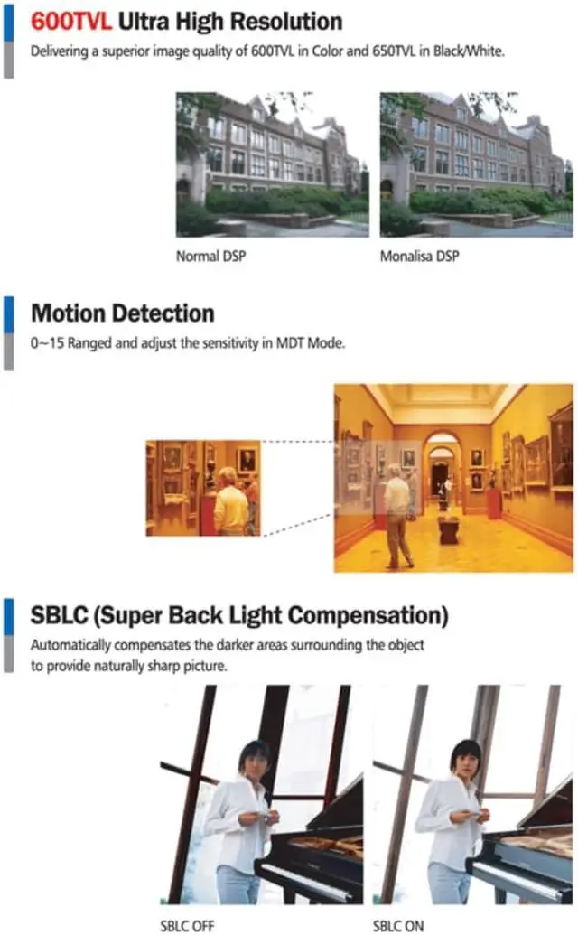 - Ultra High Resolution : 600 TV Lines