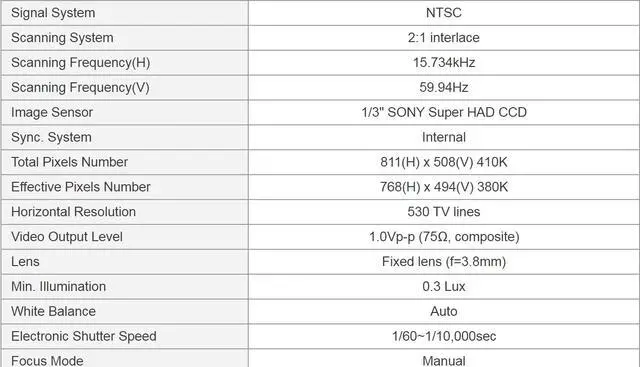 1/3 inch Sony Super HAD CCD