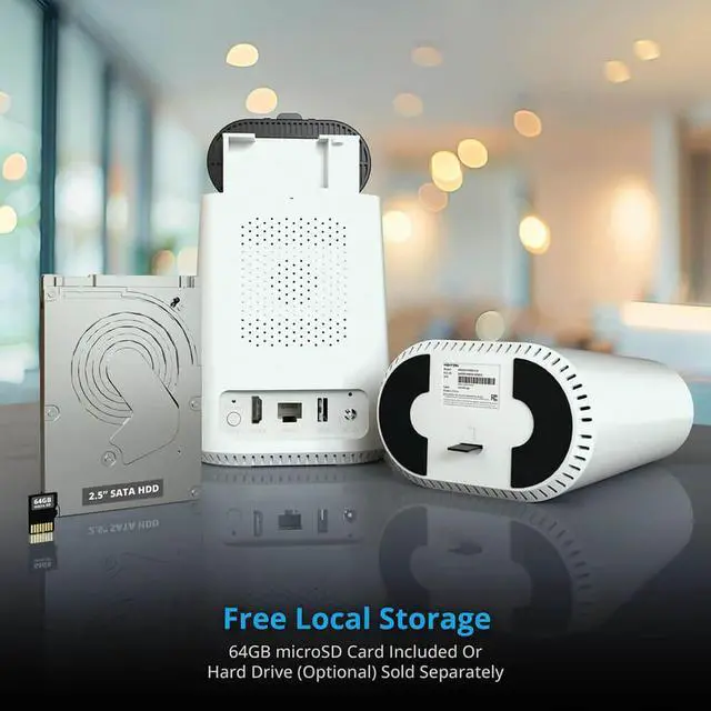 Save all your recordings locally on the included 64GB microSD card, with no monthly fees. Need more space? Simply add a compatible 2.5 SATA hard drive to expand your storage capacity. Cloud Compatible