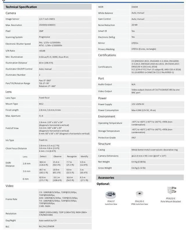 Signal: TVI/CVI/CVBS/AHD