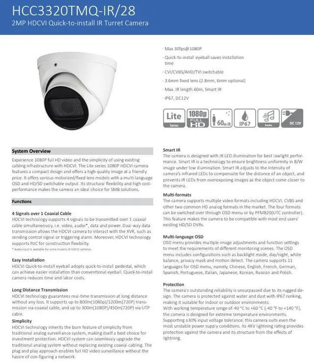 HCC3320TMQ-IR/28 || Diamond, COAX, 2MP, Turret, 2.8mm Fixed