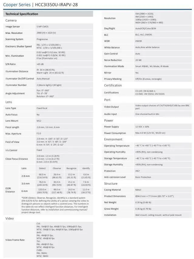 Lens Category: 2.8mm Fixed