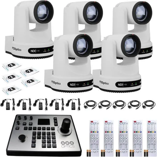 5 x PTZOptics Move 4K PTZ Camera with 20x Zoom (White) (PT20X-4K-WH-G3) + PT-JOY-G4 Controller