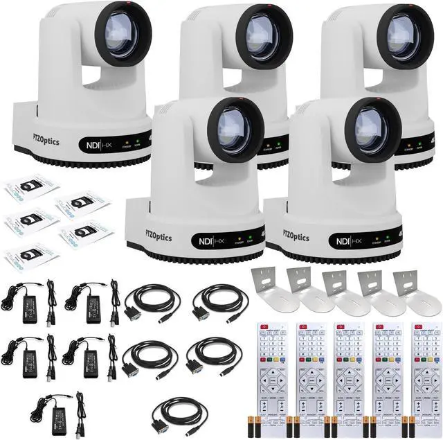 5 x PTZOptics Move 4K SDI/HDMI/USB/IP PTZ Camera with 20x Optical Zoom (White)