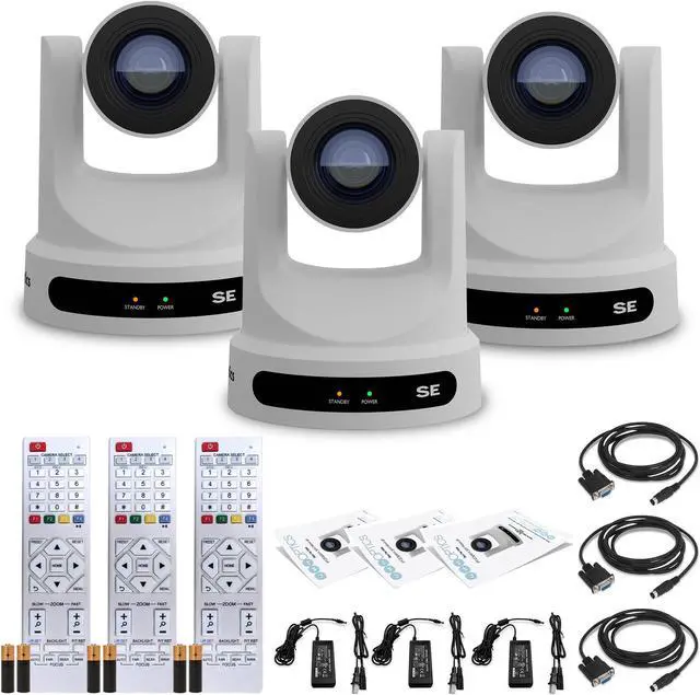 • Items Included: 3 x PTZOptics Move SE SDI/HDMI/USB/IP PTZ Camera with 30x Optical Zoom (White). Upgrade your remote meetings and presentations with the cutting-edge PTZOptics Move SE SDI/HDMI/USB/IP PTZ Camera - a high-resolution streaming and tracking solution suitable for classrooms, Houses of worship, and conference rooms. Whether you're conducting virtual classes, remote worship services, or professional meetings via platforms like Skype, Microsoft Teams, or Zoom, this versatile camera offers exceptional performance and functionality.. The Move SE camera stands out with its ability to capture resolutions of up to 1080p60, supporting various output options, including IP, HDMI, USB-C, and 3G-SDI. This extensive compatibility ensures seamless integration into your existing setup, allowing you to stream high-quality content to your preferred platforms effortlessly.. One of the standout features of the Move SE is its impressive auto-tracking capability. Ideal for dynamic presentations