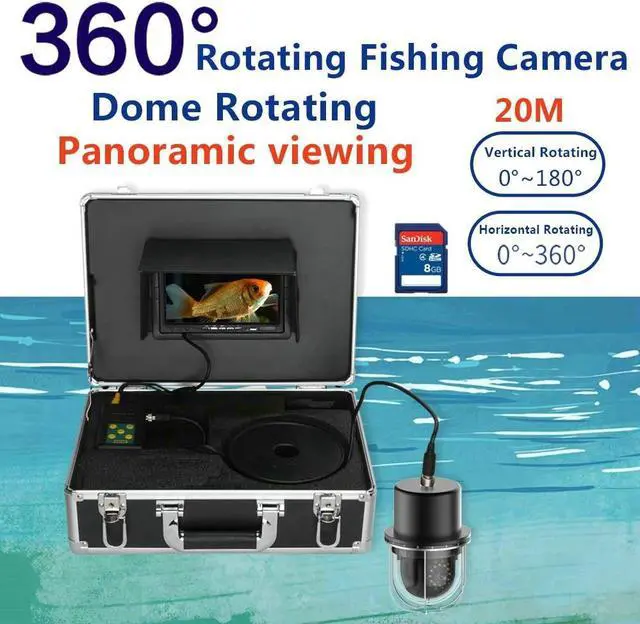 7 Inch DVR Recorder 20m Underwater Fishing Video Camera Fish Finder IP68 Waterproof 20 LEDs 360 Degree Rotating Dome Rotating Panoramic viewing Camera