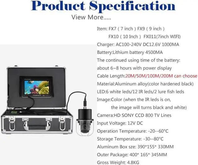 LED switch mode: only white LED on? only IR LED on? only blue LED on? all LED on? all LED off, obtain more better quality image, this underwater monitor system also has the DVR function. Besides, this item comes with 8GB TF card and this system maximally support 32 GB TF card.