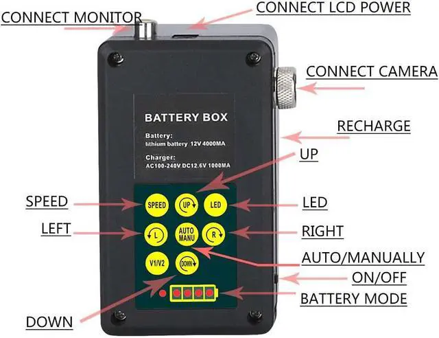 Control Box: Vertical Rotate 0-180 by manually; Horizontal rotate 0-360 by Auto or manually