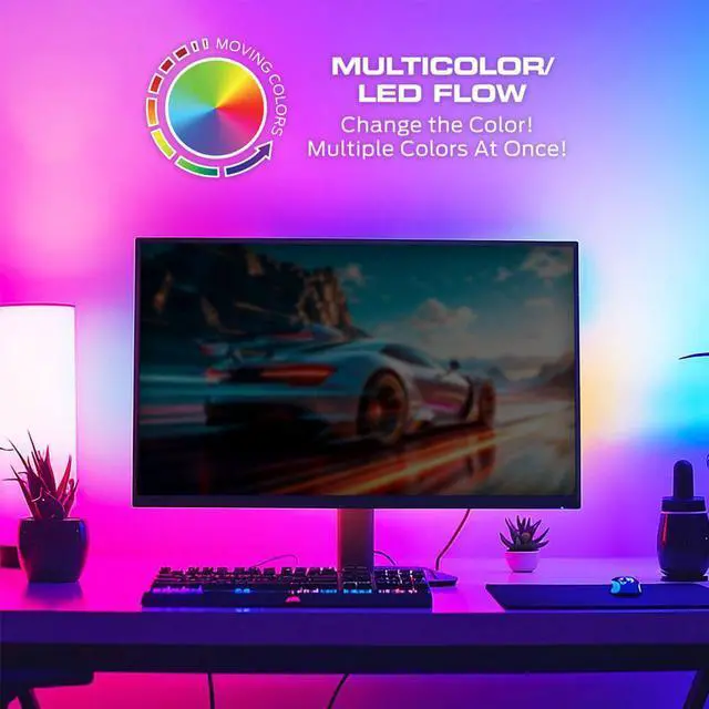 - Multicolor LED Flow Creates dynamic lighting effects that travel up and down the strip with multiple colors shown at once.