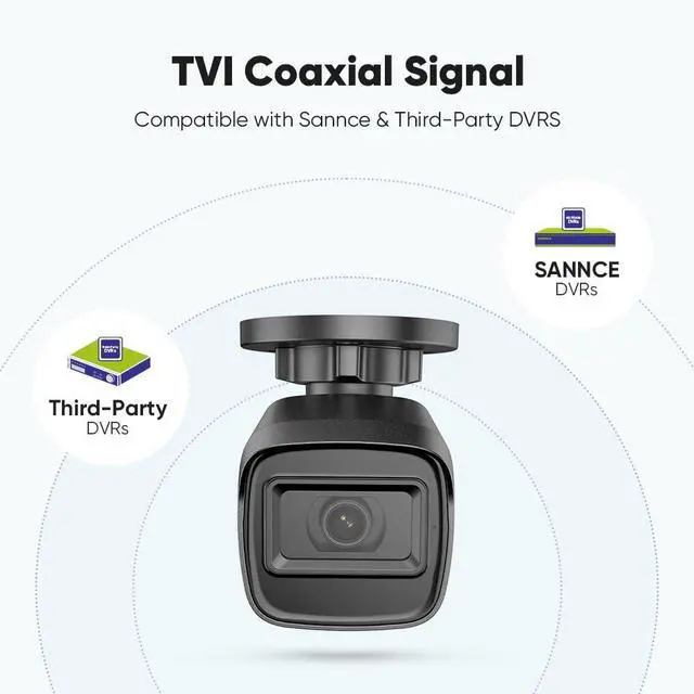 This security camera is a TVl coaxial signal, which can not only support Sannce 1080Pand 5MP Lite DVR, but also can be compatible with all-in-one third-party DVR.