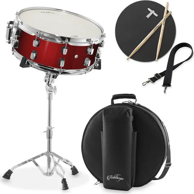 Ashthorpe's snare drum kit provides a stage-ready, great-sounding snare with a crisp, powerful sound. This professional-grade snare drum has been designed to develop and sharpen your drumming skills. This high-end snare features hardwood poplar shells, 10 tuning lugs, and all-chrome hardware and accents for a cutting-edge appearance while delivering functionality, performance, and durability in an affordable kit.