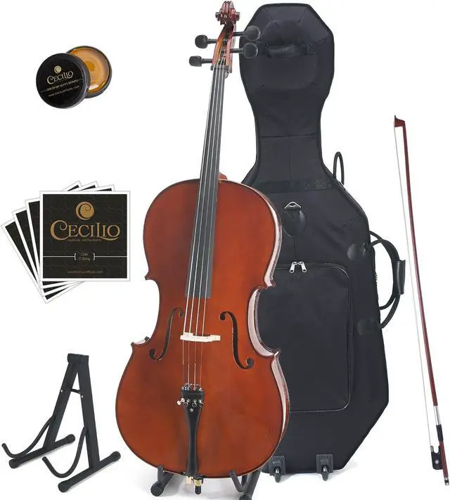 Teachers approved CCO-500 intermediate cello features a solid hand-carved spruce top with flamed maple back, neck and sides and finished with beautiful golden brown and inlaid purfling. This cello is equipped with durable ebony fingerboard, pegs, and tailpiece with 4 nickel plated detachable fine tuners. This outfit also includes two cases: one lightweight hard-shell case and soft case. Hard-shell case features an adjustable backpack straps, two bow holders, compartments for accessories, large zippered pocket on the back exterior for music sheets. Soft-case is lightweight and well-padded with pockets and adjustable backpack straps (making it convenient to carry to school or orchestra). The following accessories are also included: a Brazil wood bow with Ebony frog and unbleached genuine Mongolian horsehair, a cello stand, a high quality rosin cake, and an extra set of cello strings. Please note that bridge will not be setup before shipment to avoid damage to the cello body during transit. Cello package retails for