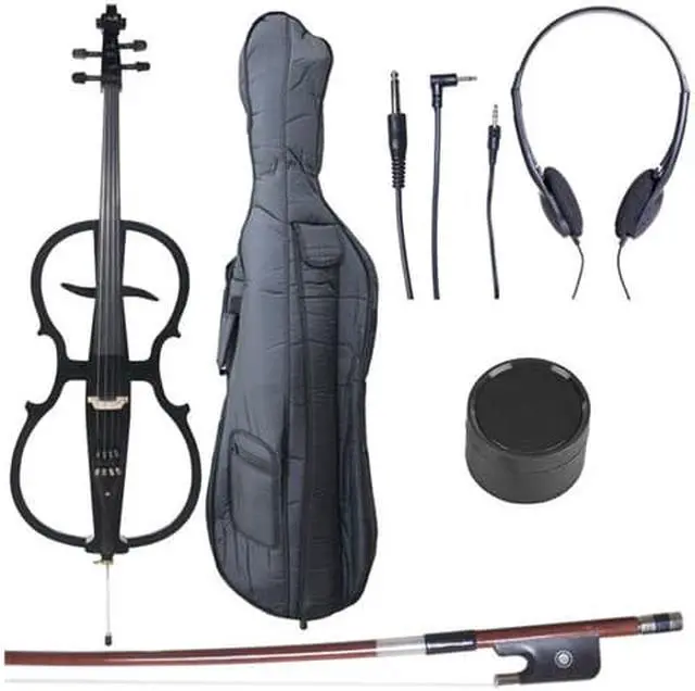 Whether you're practicing, recording in studio or performing on stage, the Cecilio Electric Cello Outfit offers excellent functionality and style. It provides cellists of all levels with the ability to practice confidently without disturbing others. The outfit features a 1/8" output jack that allows you to connect to most guitar amps or PA systems (1/4" to 1/8" cable included), volume control, headphone jack for practice and a line-in jack for practice with a background track. Powered by a 9V Alkaline battery. Great for Student, Intermediate and Professional Cellist.