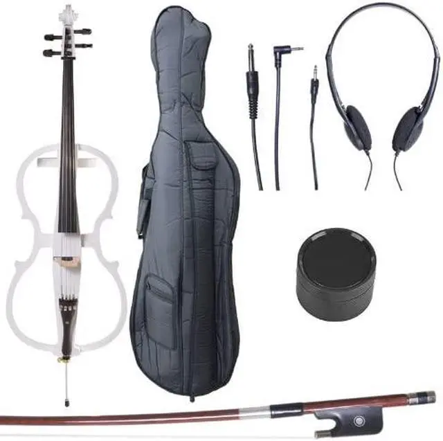 Whether you're practicing, recording in studio or performing on stage, the Cecilio Electric Cello Outfit offers excellent functionality and style. It provides cellists of all levels with the ability to practice confidently without disturbing others. The outfit features a 1/8" output jack that allows you to connect to most guitar amps or PA systems (1/4" to 1/8" cable included), volume control, headphone jack for practice and a line-in jack for practice with a background track. Powered by a 9V Alkaline battery. Great for Student, Intermediate and Professional Cellist.