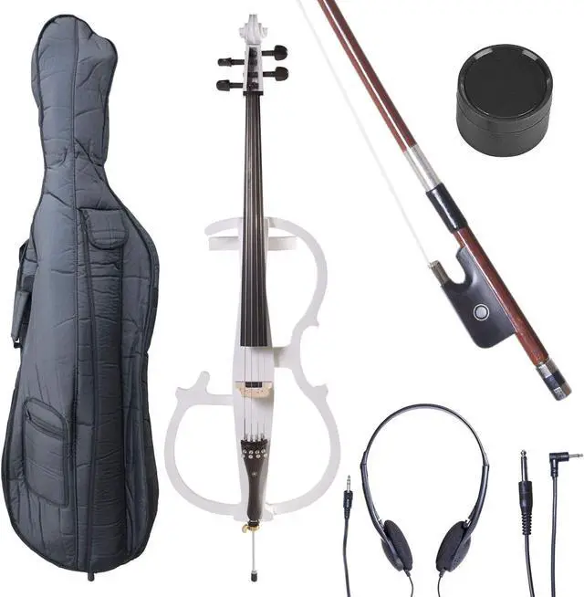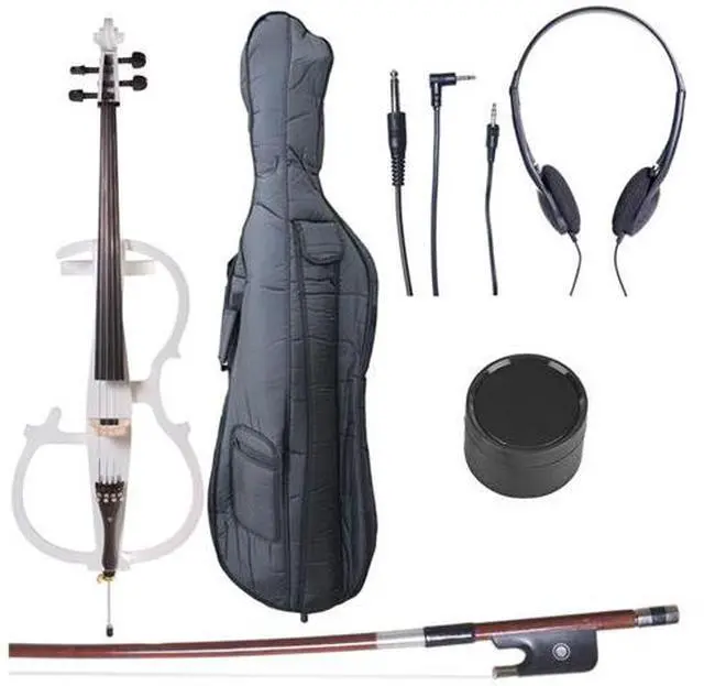 Whether you're practicing, recording in studio or performing on stage, the Cecilio Electric Cello Outfit offers excellent functionality and style. It provides cellists of all levels with the ability to practice confidently without disturbing others. The outfit features a 1/8" output jack that allows you to connect to most guitar amps or PA systems (1/4" to 1/8" cable included), volume control, headphone jack for practice and a line-in jack for practice with a background track. Powered by a 9V Alkaline battery. Great for Student, Intermediate and Professional Cellist.