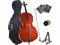 Includes: hard and soft case, a Brazilwood bow with unbleached genuine Mongolian horsehair, rosin, bridge, cello stand, and extra set of strings