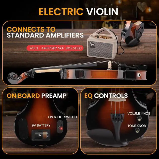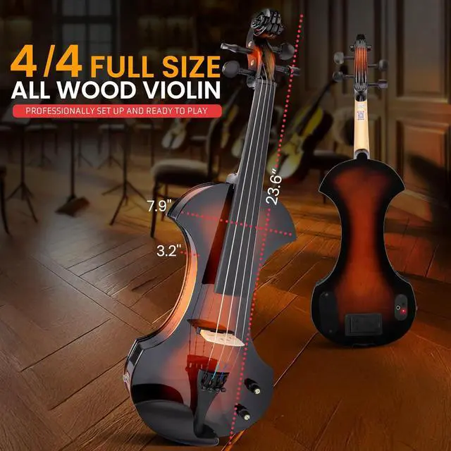 FULL STARTER KIT Our electric violin already set ready play includes items perfect beginners The package comes student rosin bridge, 1 string adjuster, foamed triangle case bow, ebony frog