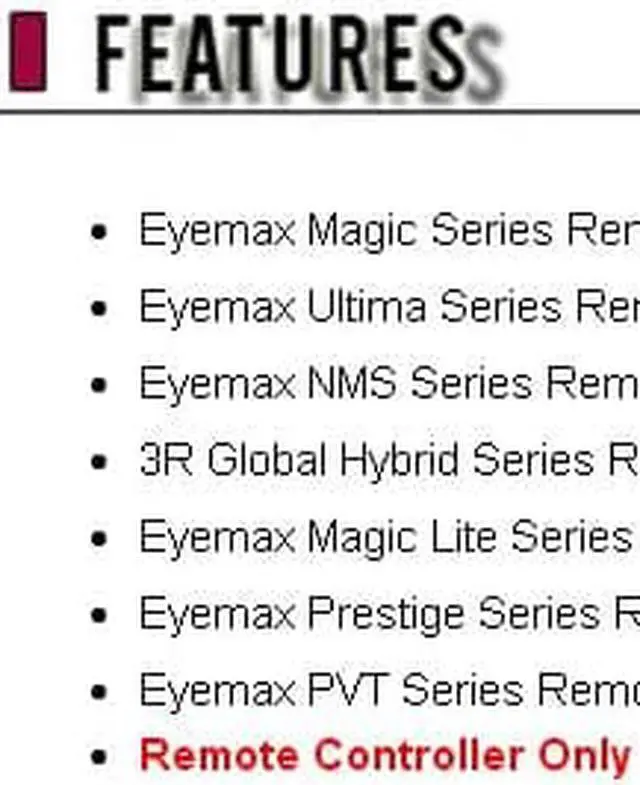 Eyemax Ultima Series Remote Controller