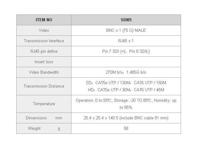 - Support SDI (SMPTE 259M), HD-SDI (SMPTE 292M)