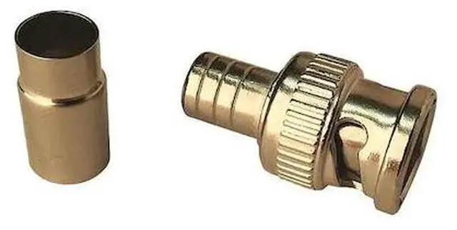 Coaxial Crimp Connector, BNC Male Connection, Cable Type RG-6, Color Silver, Crimp-On Installation Method, Hz 0 to 1 GHz, Impedance 75 ohm, Size 1 in, Package Quantity 10. This item has been restricted from sale in the following state (s): []