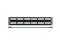 The 48-port NetKey™ modular flat patch panel in black includes a strain relief bar and takes up two rack spaces (2 RU).