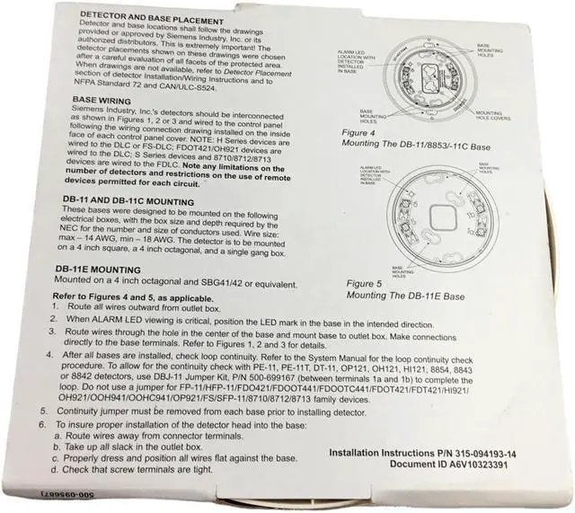 Package Includes: Siemens DB-11/-11E/8853/-11C Detector Base FNFP