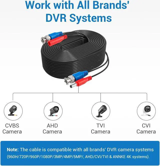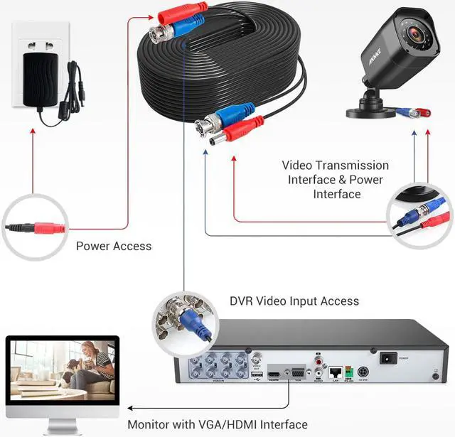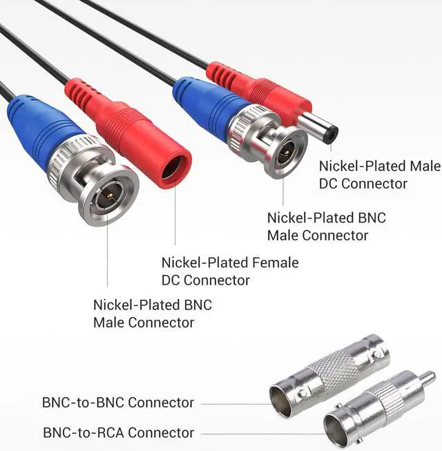 * It comes with pre-made 2.1 mm power plugs and BNC video connections for use with our security cameras/DVRs or any standard Surveillance equipment.