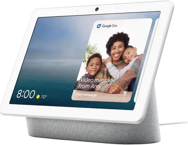 Keep everyone connected Hey Google, call Mom. Make video calls to friends and family. You can also leave video messages for each other on Nest Hub Max. Stay in touch and in sight Multitask while you make video calls. With auto-framing, the camera keeps you in view as you move around the room. Ultimate digital picture frame See your latest great shots from Google Photos automatically. They'll all look beautiful on a 10 HD screen. Check in on home when you're away Keep an eye on things at home with the built-in Nest Cam.