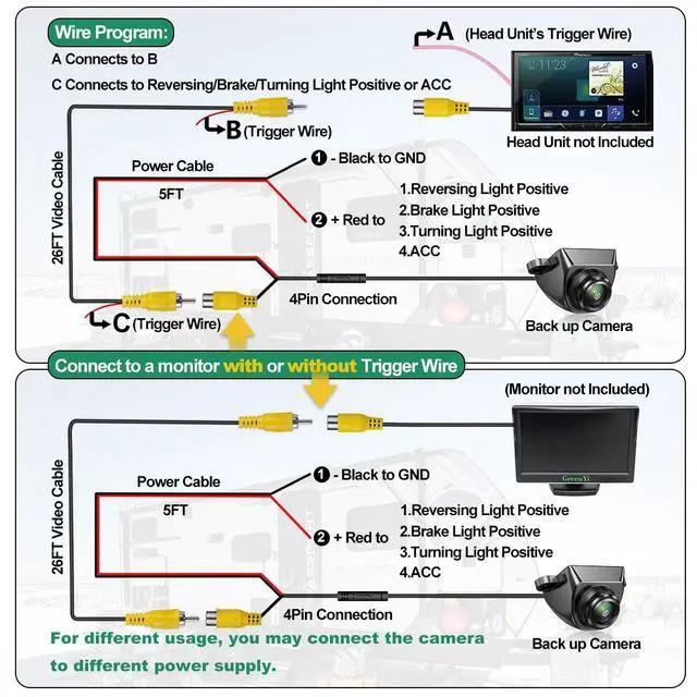 All of our 4-pin cameras can't be connected directly with any other monitors(no matter DVR or dash or whatever)without using our power cable.