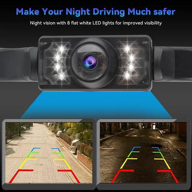 [New 8 infrared LED]: High-definition and 170°Wide View Angle & Adjustable Lens. Provide a better performance in dark space to keep safe driving. Use 8 LED lamps, the ultra clear picture at night is also available for you. 170 degree ultra wide angle, makes every corner at the back of the car to been seen clearly, enables car car driving safer.