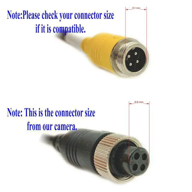 - Please check the camera 4 PIN connector careful if it is compatible with your monitor connector.