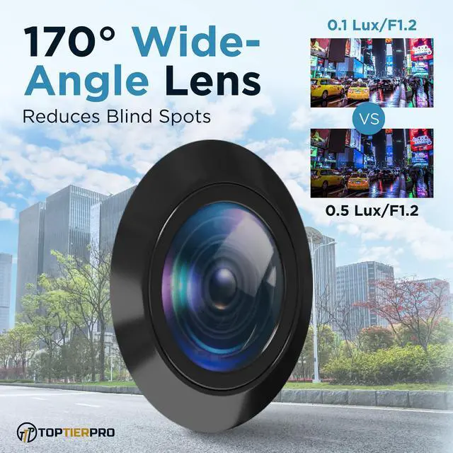 Enjoy a broader, safer view with the built-in 170° wide-angle lens. This ultra-wide perspective reduces blind spots and helps you spot obstacles, pedestrians, or vehicles approaching from the sides. Whether you’re reversing, parking, or changing lanes, the expanded field of vision provides maximum awareness for stress-free driving.