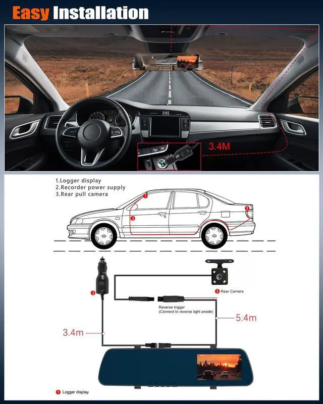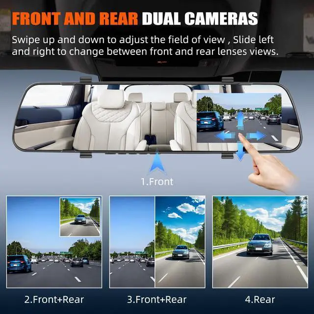 Mirror Dash Cam 4 Inch Rear View Mirror 1080P Front and Rear View Dual Cameras