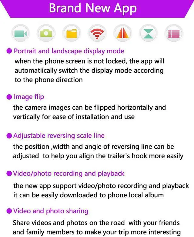 smooth video image. Combined with the newly designed app, we believe this vehicle backup cameras can give you an almost perfect experience.
