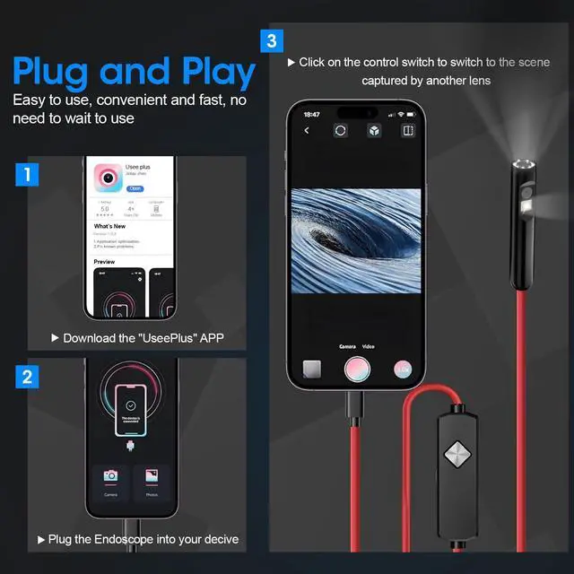 Dual-Lens 1920P HD Endoscope with Light