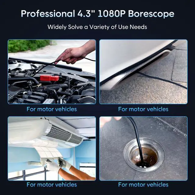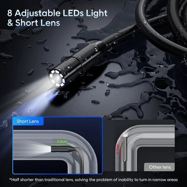 Inspection Endoscope adopts a 1920P dual lens HD camera probe, at the touch of a button, you can switch front and side images or shoot videos. Equipped with 0.78-3.95in focal length to, achieve more accurate detection of problems.