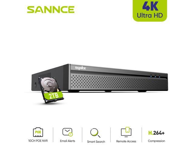 SANNCE 4K 8 Channel PoE NVR, 8MP CCTV Security Camera System Network Video Recorder Supports 8MP 5MP 3MP 1080P HD PoE Surveillance IP Camera, Human Detection, 2TB Hard Drive