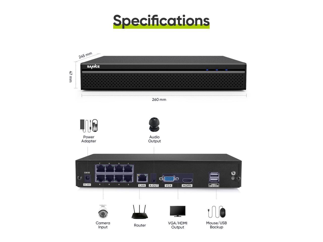 - Used in conjunction with third-party IP cameras - SANNCE and other brands of IP cameras can be used with this SANNCE NVR.