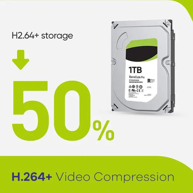 The H.264+ coding standard reduces the bandwidth required for data transmission, providing smooth video streaming. Also, the H.264+ codec condenses the video files and lowers storage space requirements.
