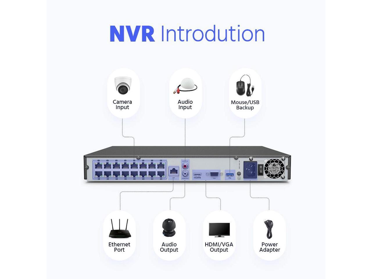 - 2: This 16CH NVR seamlessly integrates with IP cameras for all-weather recording and AI motion detection. You can preset custom areas to obtain real threats and gain maximum peace of mind.