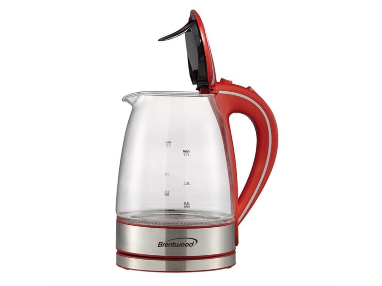 Brentwood KT-1900R Tempered Glass Tea Kettles, 1.7 Ltr, Red