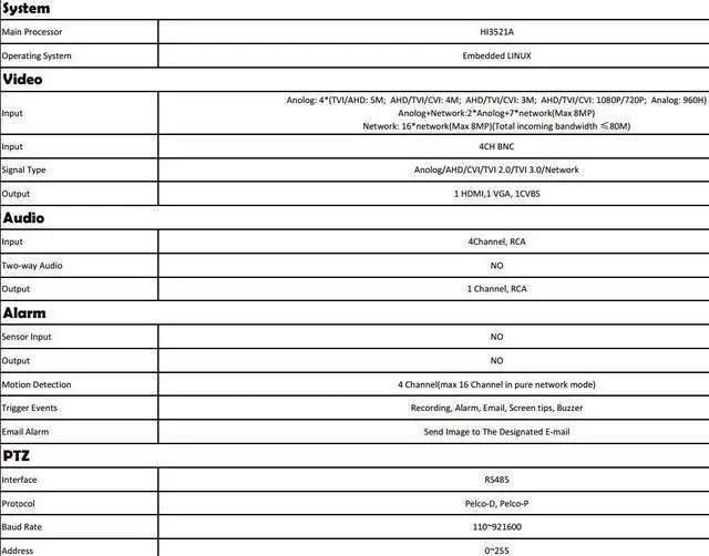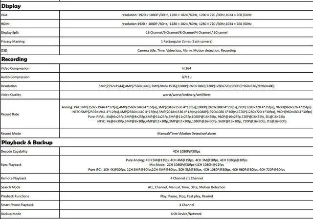 Each channel Supports timed recording and motion detection, alarm recording